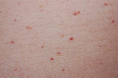 - 治療後レーザー照射箇所に発赤、膨疹、局所的に内出血(紫斑)や点状皮内出血が生じます。内出血(紫斑)や点状皮内出血が生じた場合、完全に消退するまでに通常1~4週間ほどかかります(多くの方が2週間以内に消退します)。