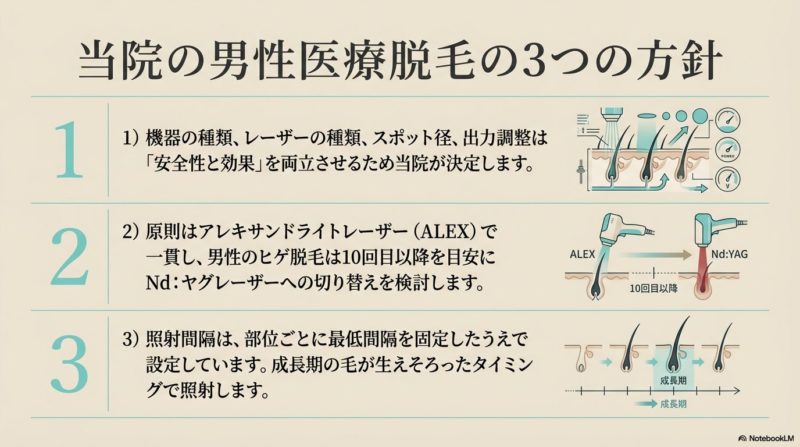1.当院の男性医療脱毛の3つの方針