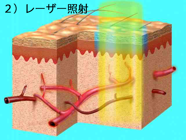 血管病変の治療には波長595nm(ナノメートル)のロングパルス色素レーザー(ダイレーザー)を照射するシネロン・キャンデラ社のVビームⅡが優れています。